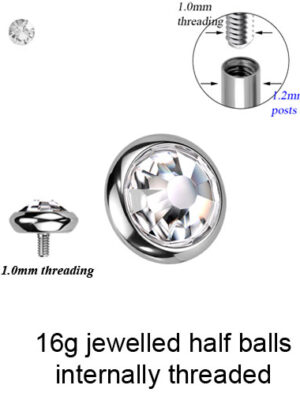 INMJHBY-16g Internally Threaded Jewelled Half Ball