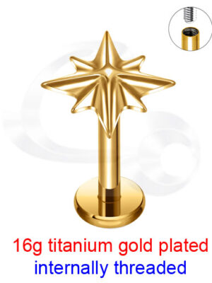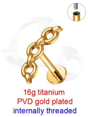 GPTINMLB4297 Gold Plated Titanium Internally Threaded 16g Labret