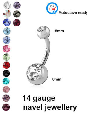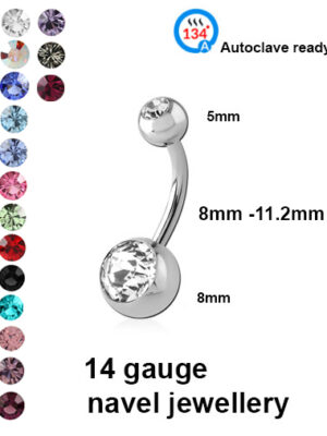 BNDJ 316L Surgical Steel Double Jewelled Navel Banana – 8mm to 11.2mm