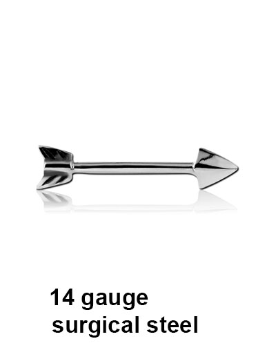 This 316L surgical steel arrow nipple barbell has 1.6mm external threading, making it most suitable for piercings that have already undergone the healing process.